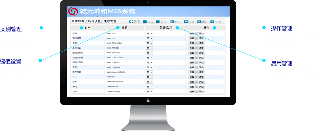 乾元坤和MES系统平台可对用于配置系统的数据进行缓存处理,