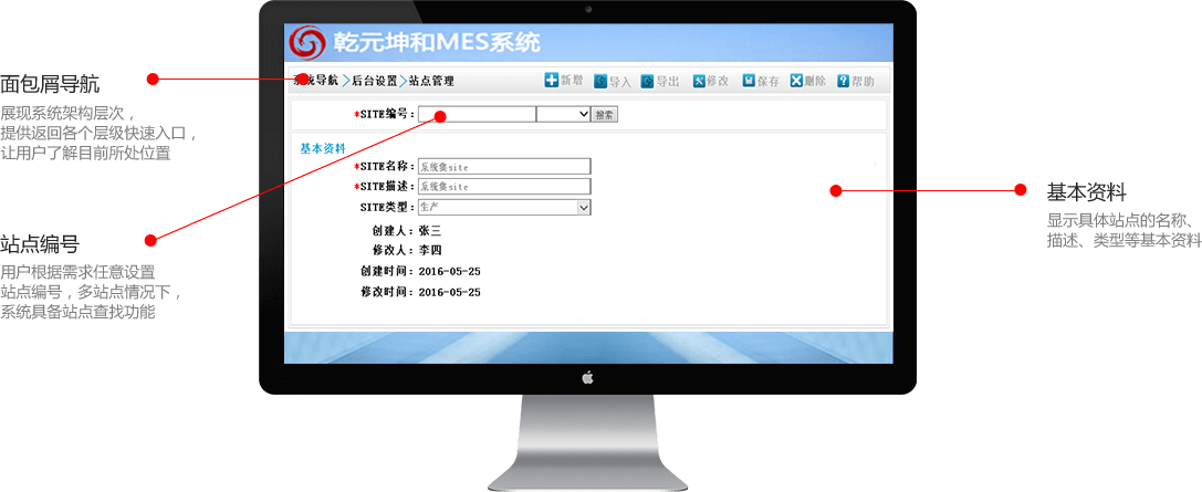 站点是乾元坤和MES系统运行的基础,在实际业务环境中用来区分不同的工厂,